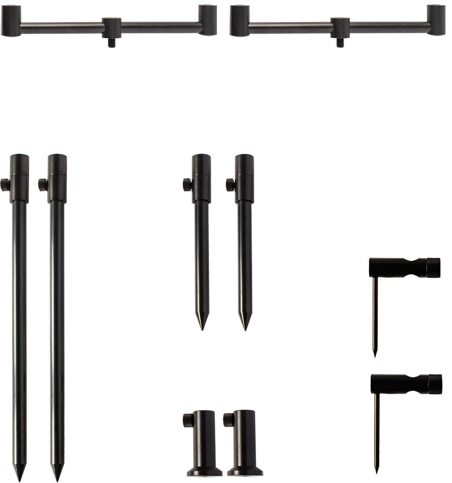 Практичний малогабаритний набір стійок, буз барів, стійок для помосту та стабілізаторів у сумці-чохлі. Набір розрахований на 2 вудилища. Займає дуже мало місця та має легку вагу. Матеріал виконання обладнання – алюміній, а чохла – водонепроникний оксфорд кольору Coyote (Койот).