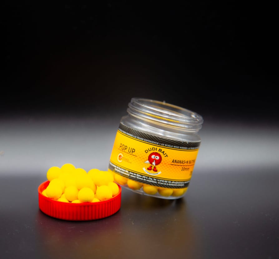 Супер плаваючі попапи, дуже привабливі і з запахом ананаса + (N-масляна кислота особливо ефективна для лову коропа. Вона також є підсилювачем аромату, приманки, що містять цей інгредієнт, будуть виявлені рибою швидше)