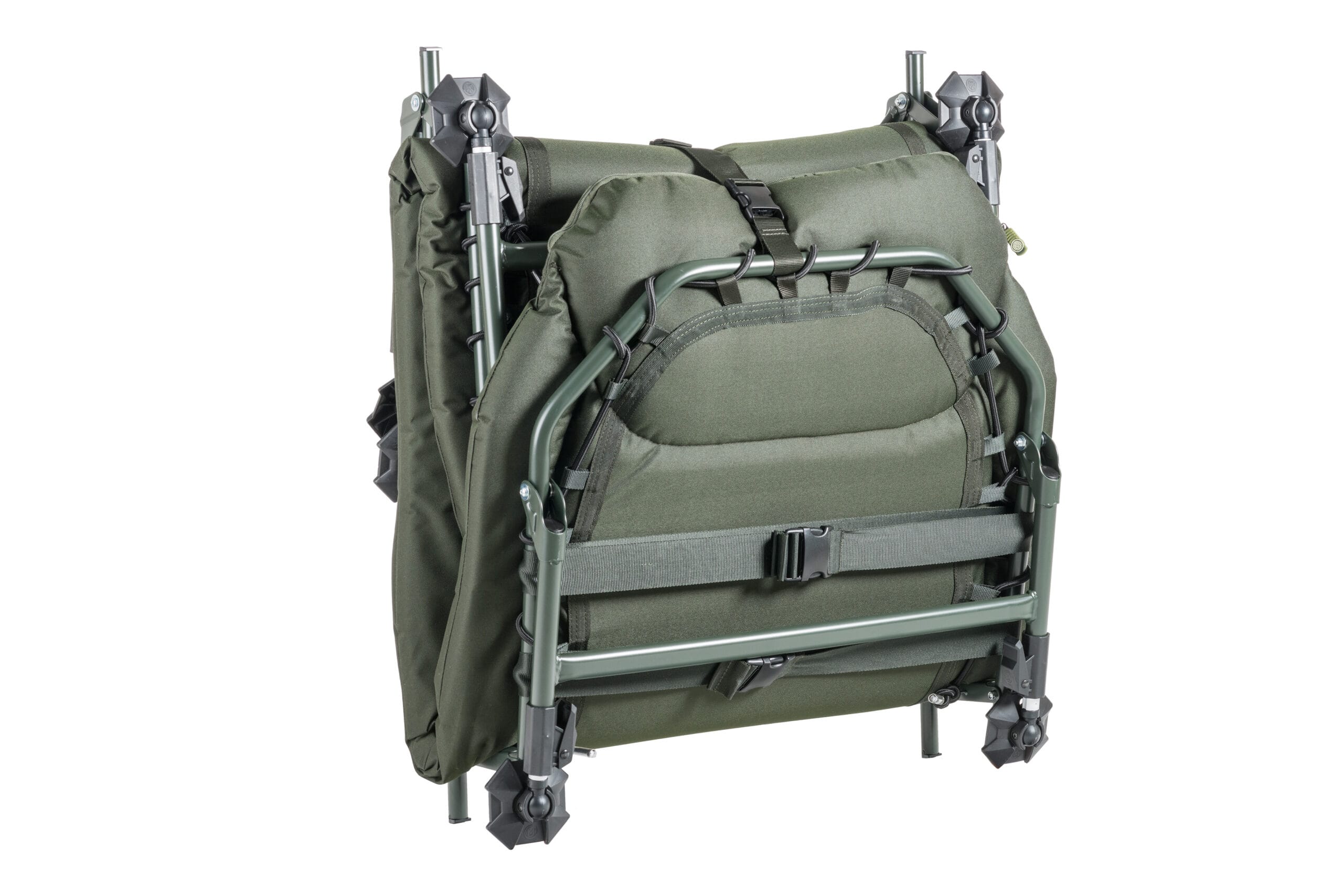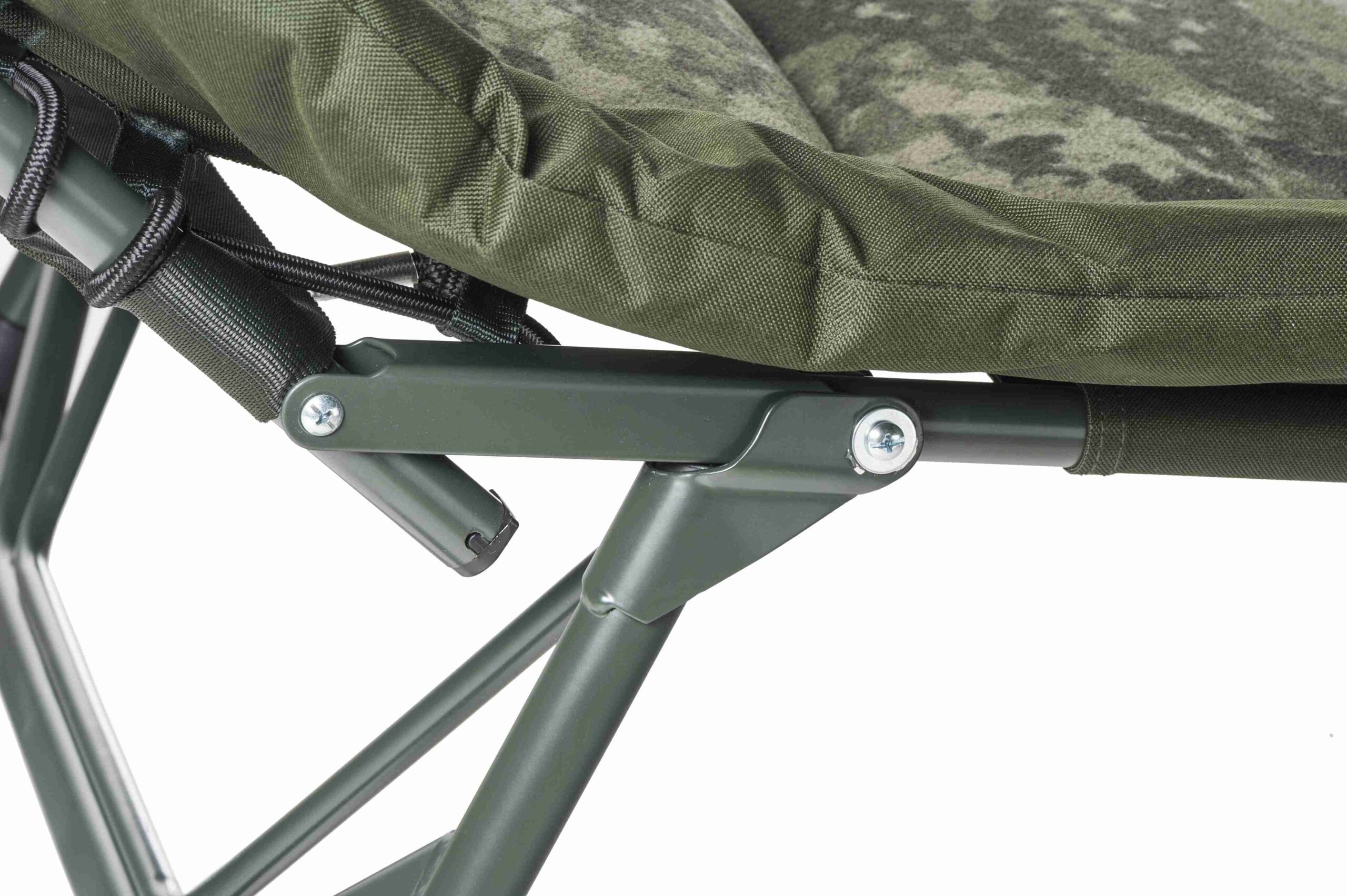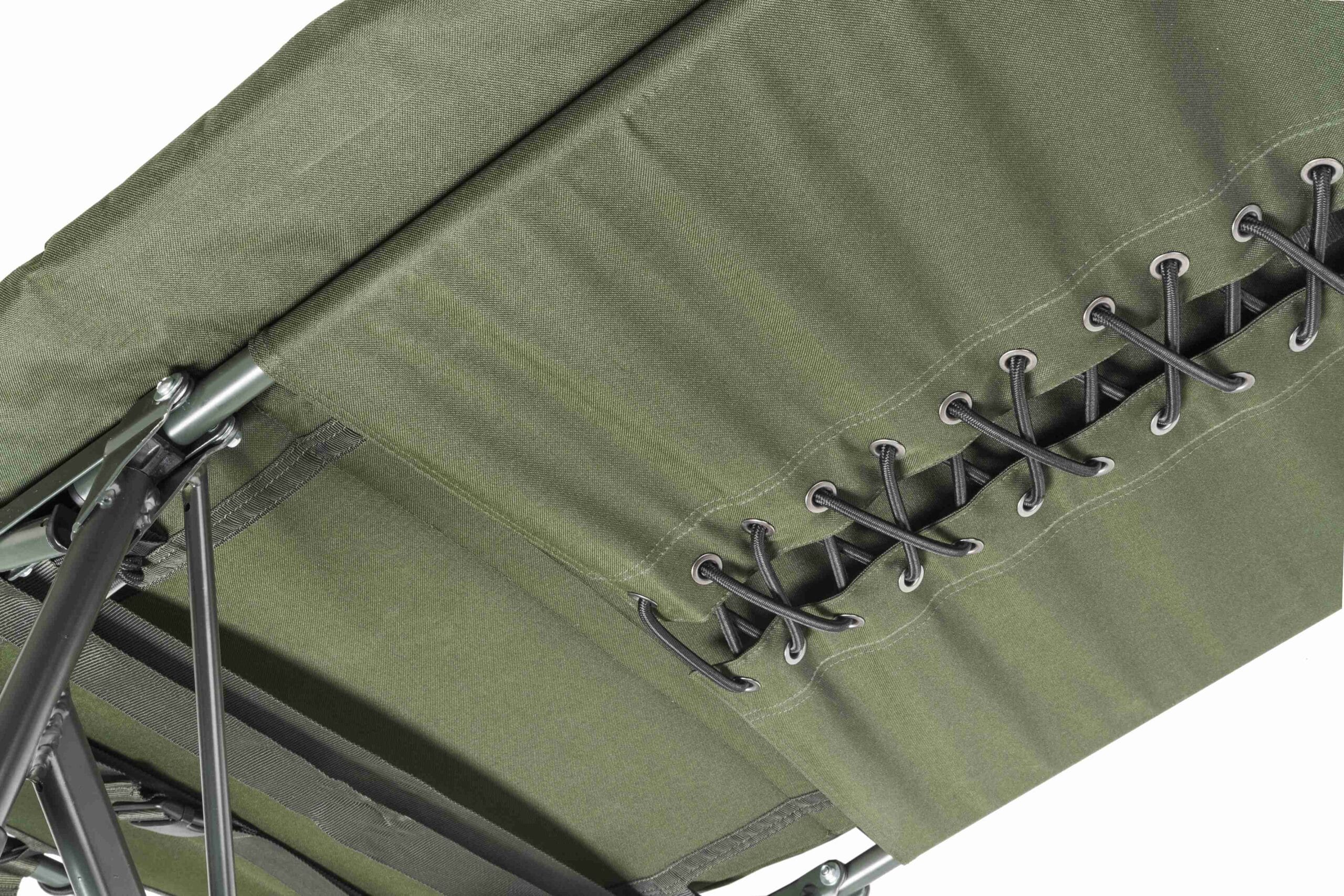 Легке роздкладне ліжко в камуфляжі. Товстий матрас з флісовим покриттям пропонує дійсно високий комфорт. Жорсткісьть можна регулювати за допомогою вдосконаленої системи натяжіння в середній частині і додаткових регульованих натяжних ремней. Перевага – велика максимальна довжина регульованих ніжок з великими грязевими опорами.